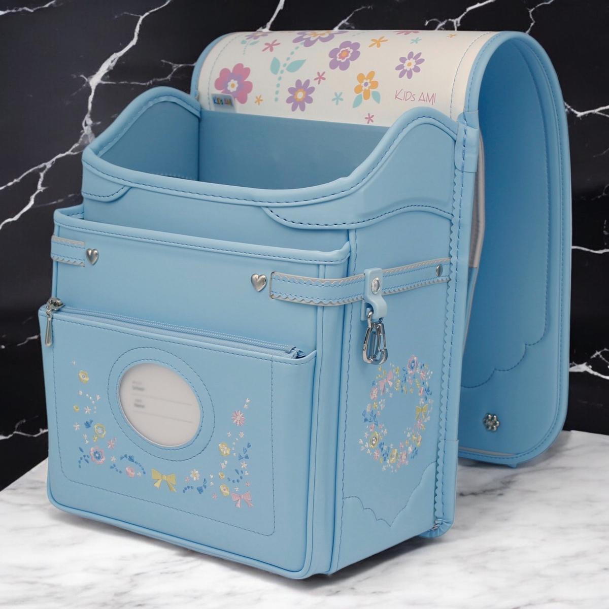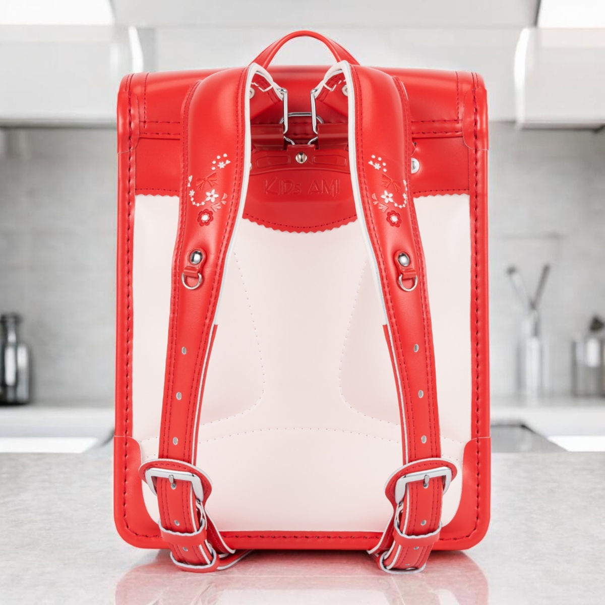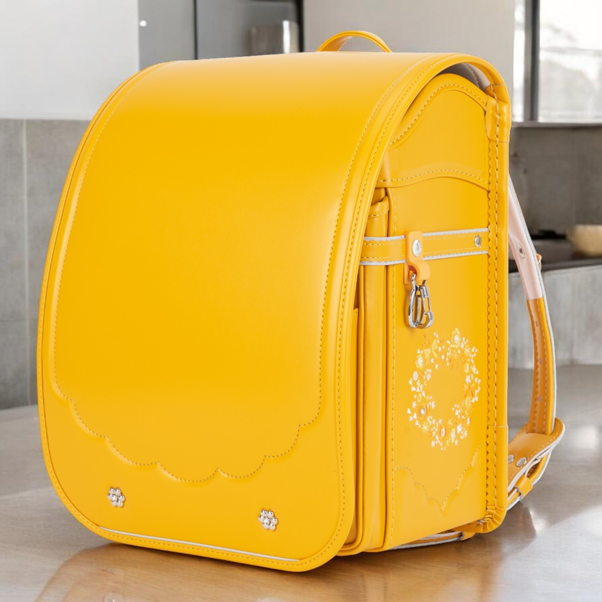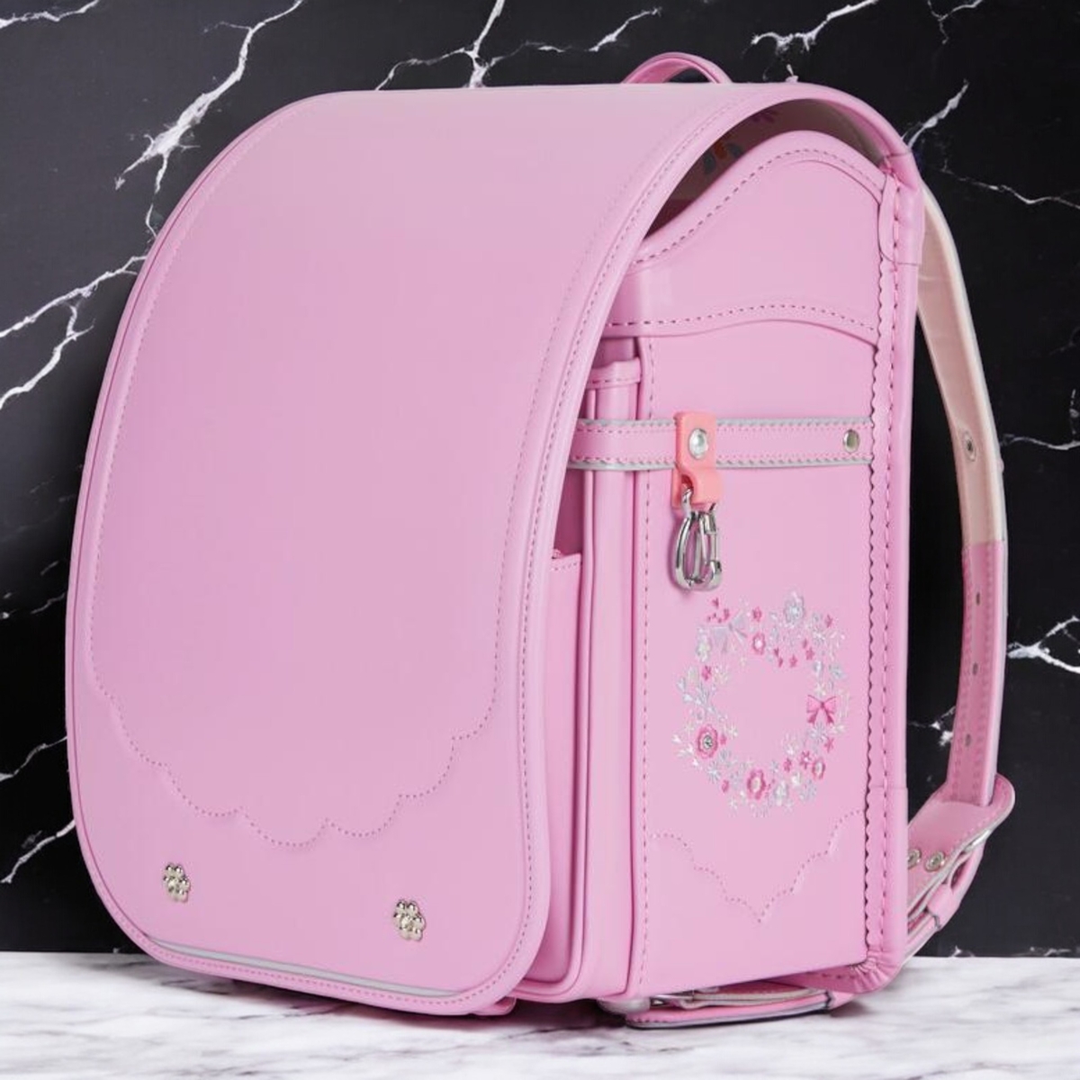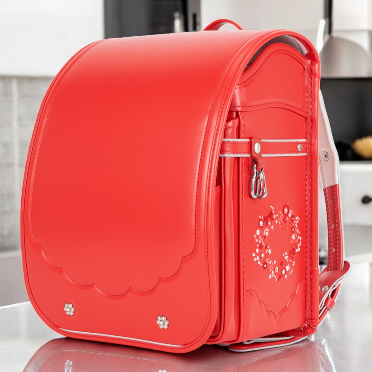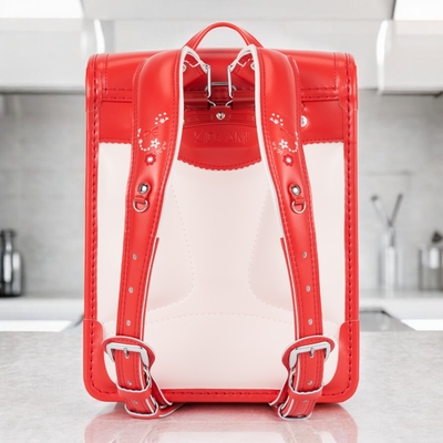 ウインディソフトで肩・腰・背中を優しくサポート、360°反射で安全、かわいい花柄刺繍+スワロフスキーのキラキラまで…全部標準装備!